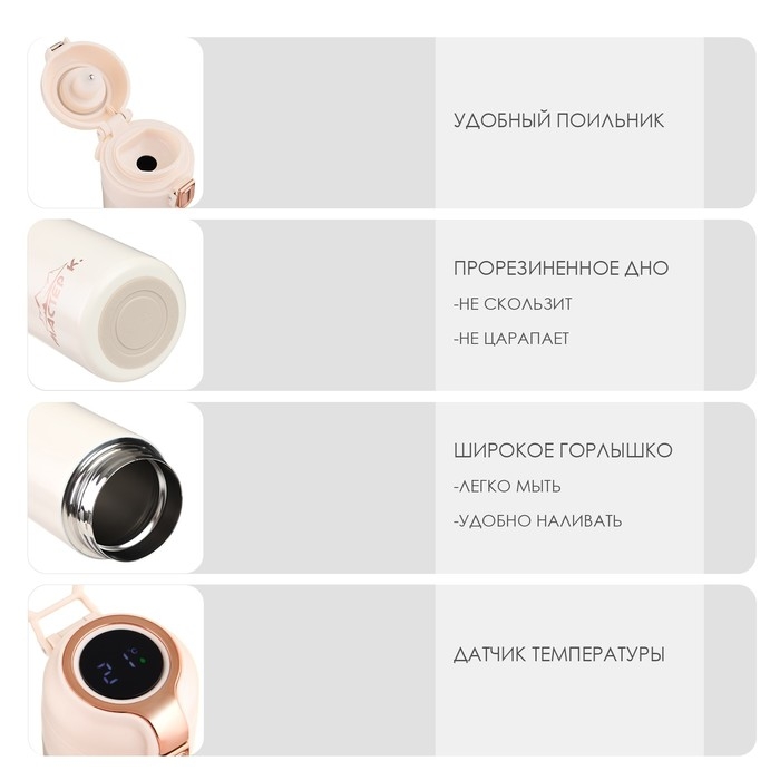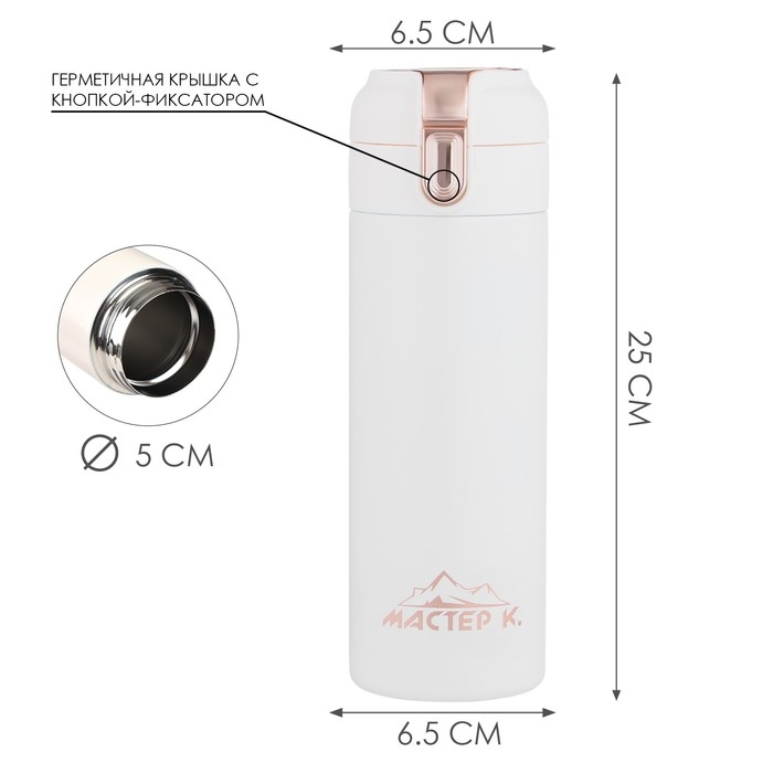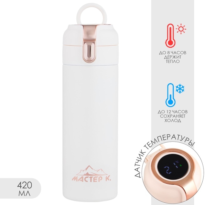 Термокружка, 420 мл, Simple "Мастер К", с термометром, сохраняет тепло до 8 ч, белая