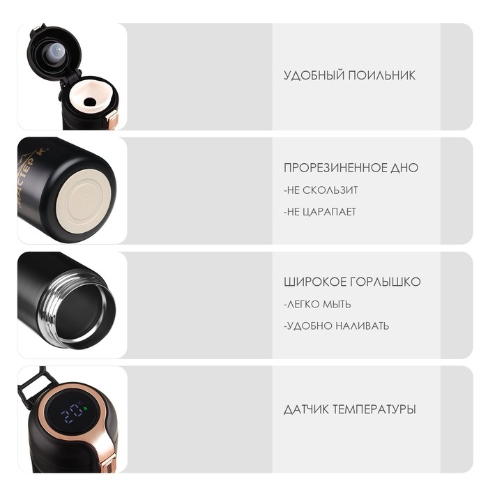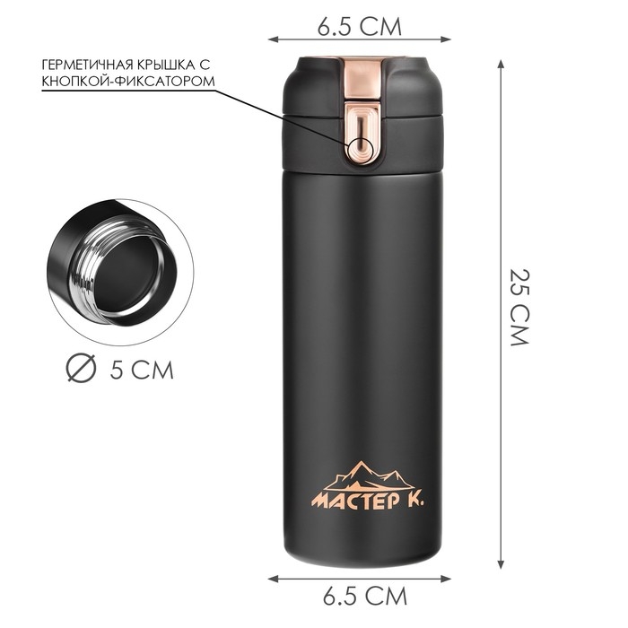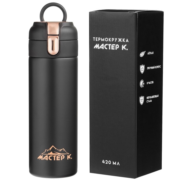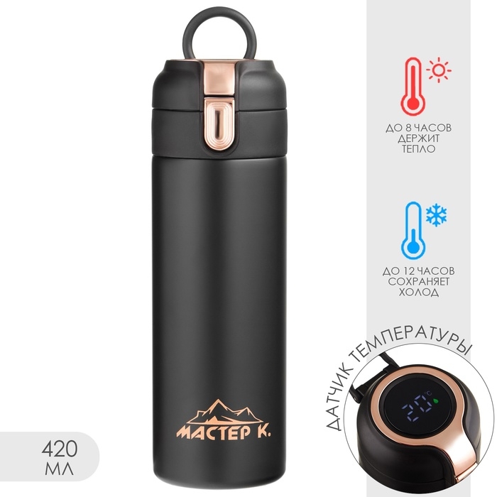 Термокружка, 420 мл, Simple "Мастер К", с термометром, сохраняет тепло до 8 ч,черная