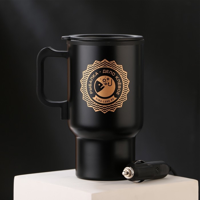 Термокружка, 450 мл, Автомобильная «Рыбалка», сохраняет тепло 3 ч, с подогревом от прикуривателя