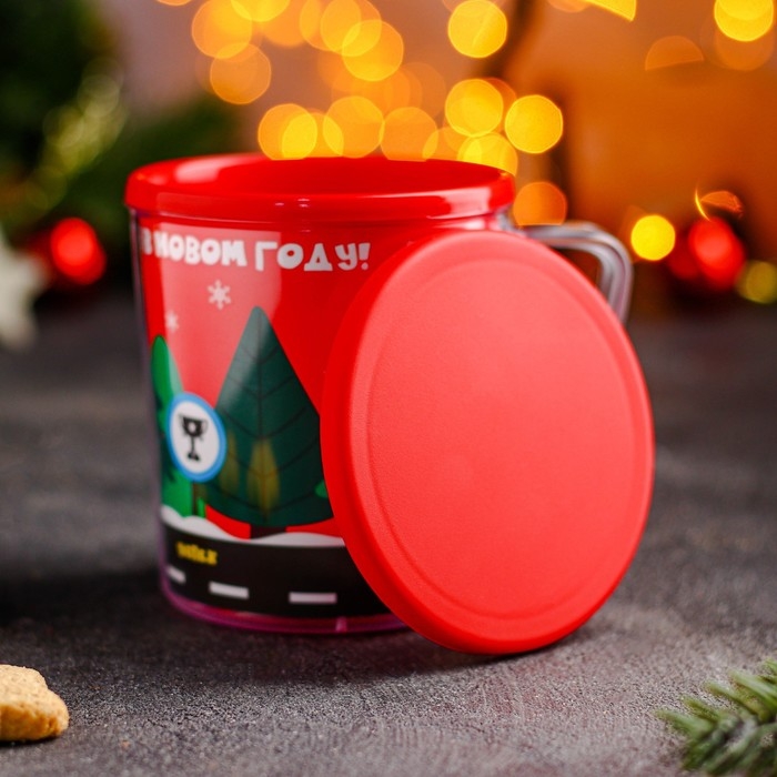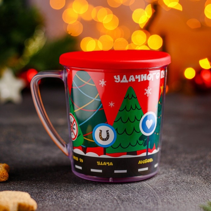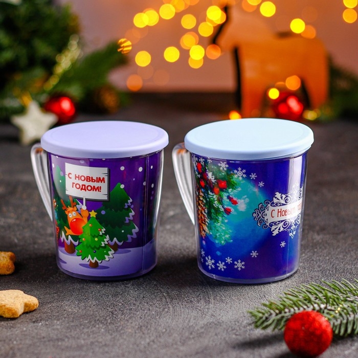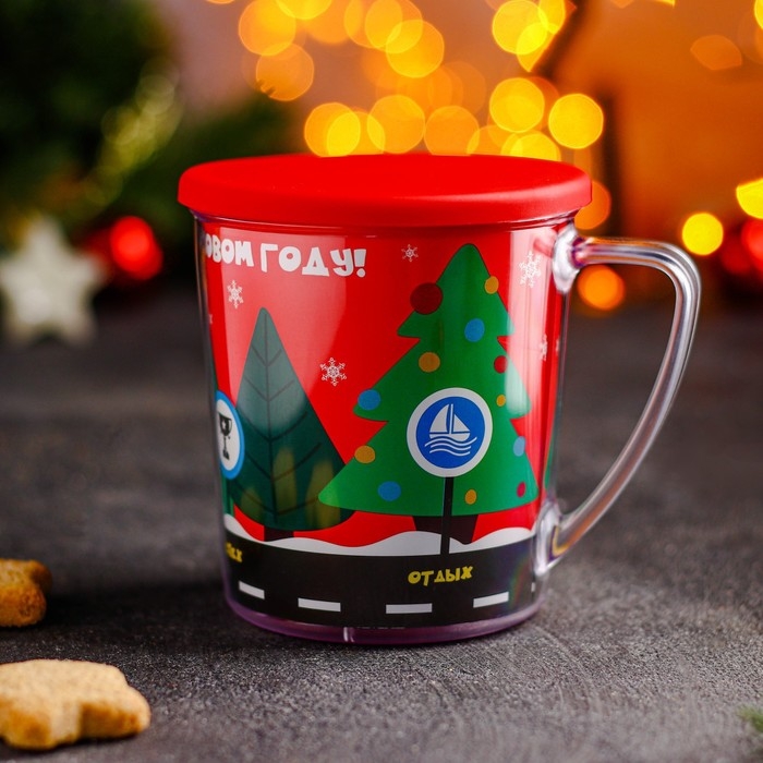Термокружка пластиковая с крышкой «С Новым годом!», 400 мл, рисунок МИКС