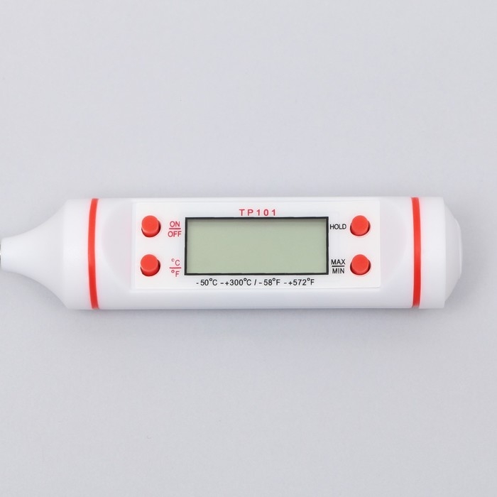 Термометр представляет собой щуп из нержавеющей стали с пластиковой ручкой, в которую встроен дисплей. Термометр предназначен для измерения температуры жидких, сыпучих и полутвердых сред методом погружения щупа-иглы в измеряемую среду. Простое и легкое в использовании устройство обладает низким электропотреблением, высокой стабильностью и точностью измерения температуры.