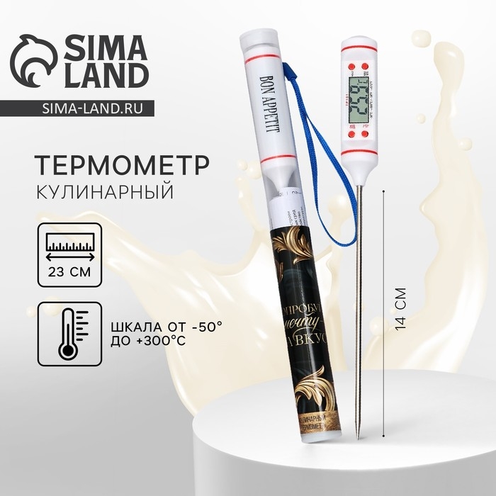 Термометр, градусник кулинарный, пищ "Для кухни", от 20 до 200 °C, 20 см х 1.5 см