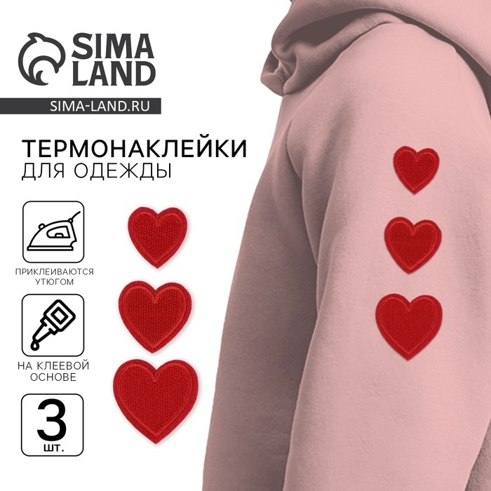 Термонаклейки на одежду «Сердца», 3 шт.
