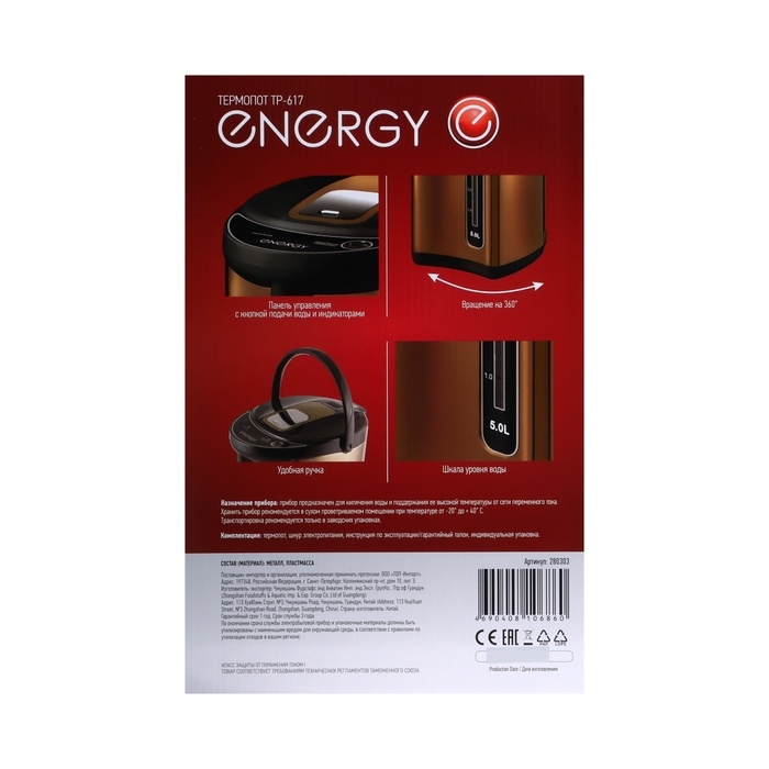 Термопот Energy TP-617, 750 Вт, 5 л, золотистый