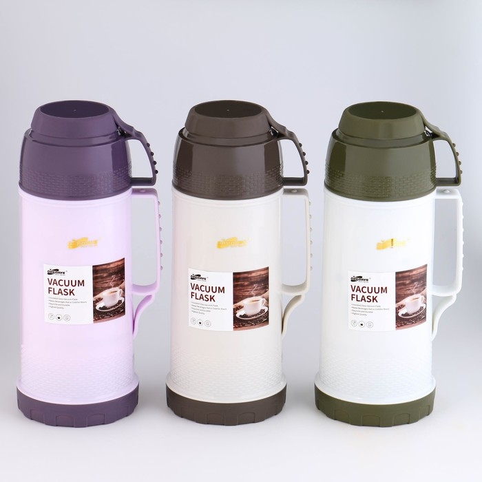 Термос 1.8 л, со стеклянной колбой, сохраняет тепло 12 ч, с кружкой, микс