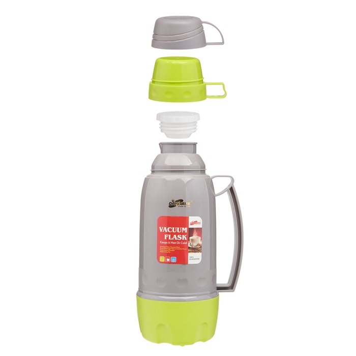 Большой вместительный термос объемом 1.8 л оснащен внутренней жаропрочной колбой из стекла, что позволяет удерживать температуру напитка до 12 часов. Удобная узкая горловина и практичная винтовая пробка делают использование термоса максимально удобным и уменьшают теплопотери. Эргономичная ручка плотно прилегает к корпусу. Термос прекрасно подходит для чая, кофе, глинтвейна, травяных настоев и компотов. Герметичная крышка исключает потери тепла и предотвращает протекание жидкости. Термопосуда изготавливается из качественных материалов, поэтому содержимое не приобретает посторонний привкус.