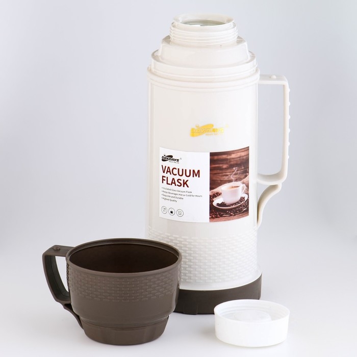 Термос 1 л, со стеклянной колбой, сохраняет тепло 12 ч, с кружкой, микс