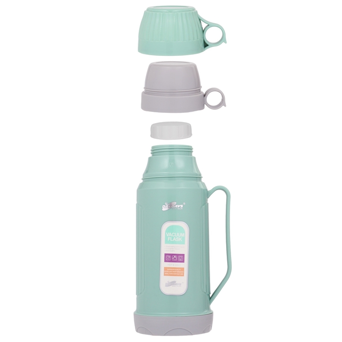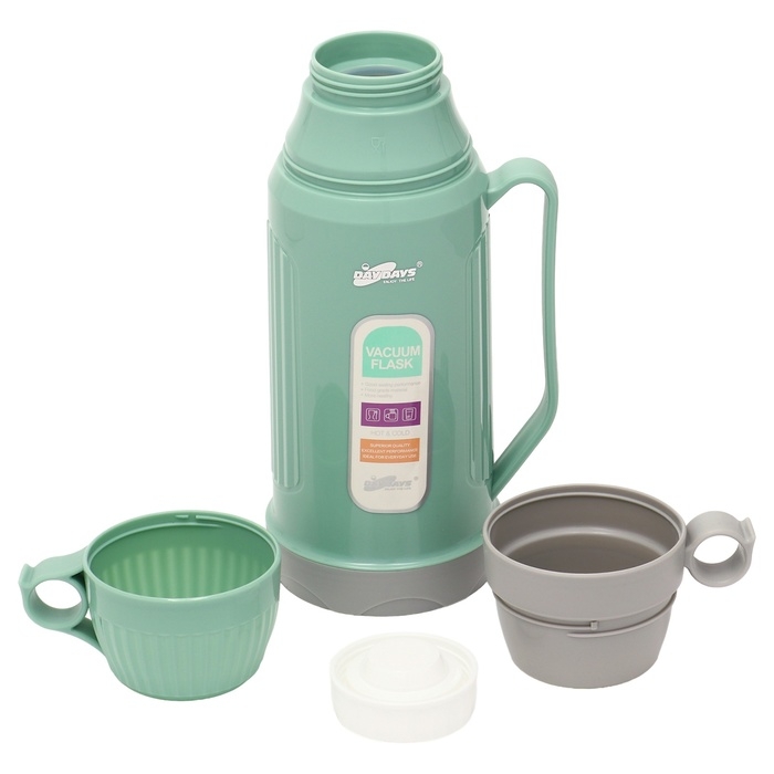 Термос 1 л, со стеклянной колбой, сохраняет тепло 12 ч, с кружкой, зеленый