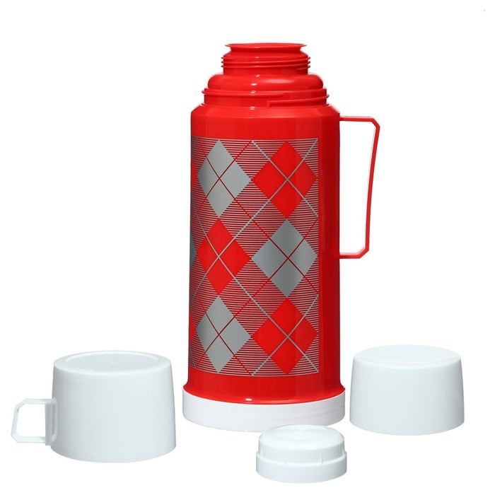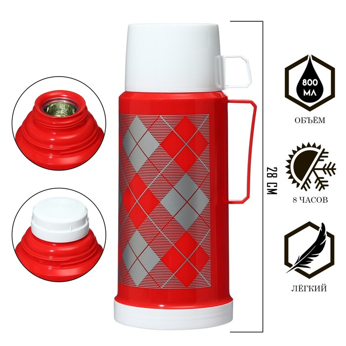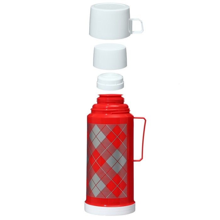 Термос 1 л, со стеклянной колбой, сохраняет тепло 8 ч, 12 х 28 см, красный