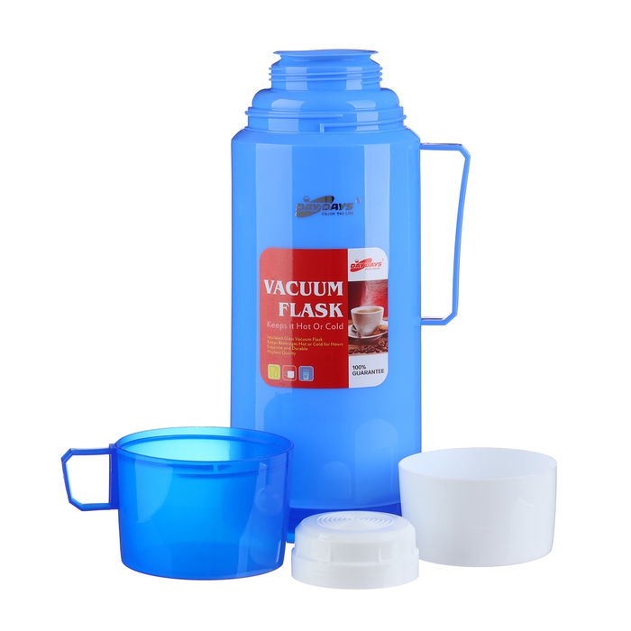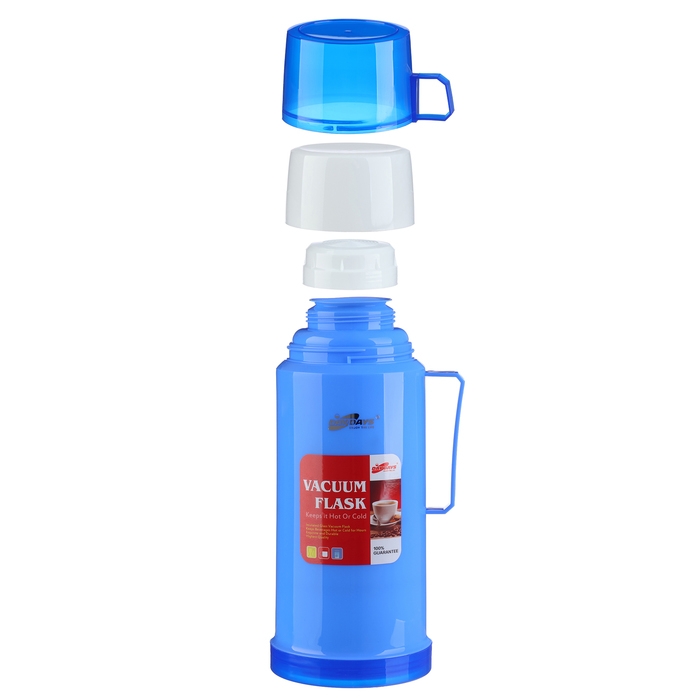 Термос 1 л, со стеклянной колбой, сохраняет тепло 8 ч, 13 х 28 см, голубой