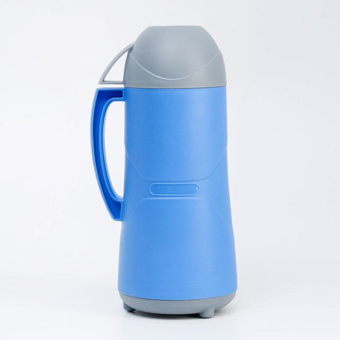 Термос 1 л, со стеклянной колбой, сохраняет тепло 8 ч, 30 х 16 см, синий