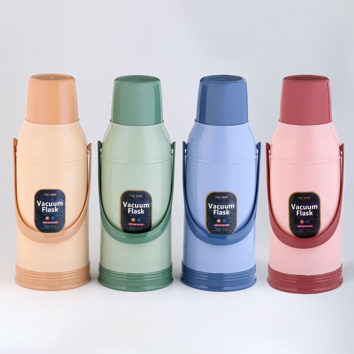 Термос 2 л, со стеклянной колбой, сохраняет тепло 12 ч, микс