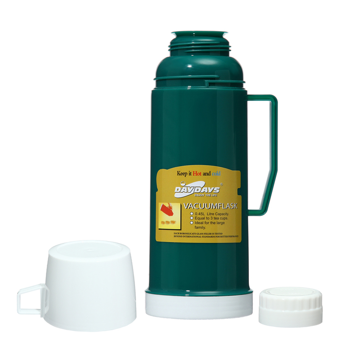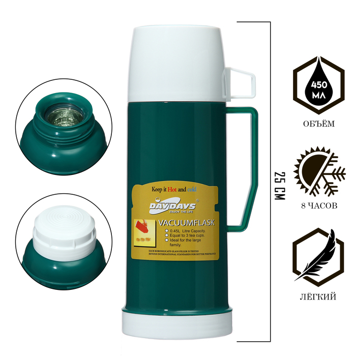 Термос 450 мл, со стеклянной колбой, 9 х 25 см, зеленый