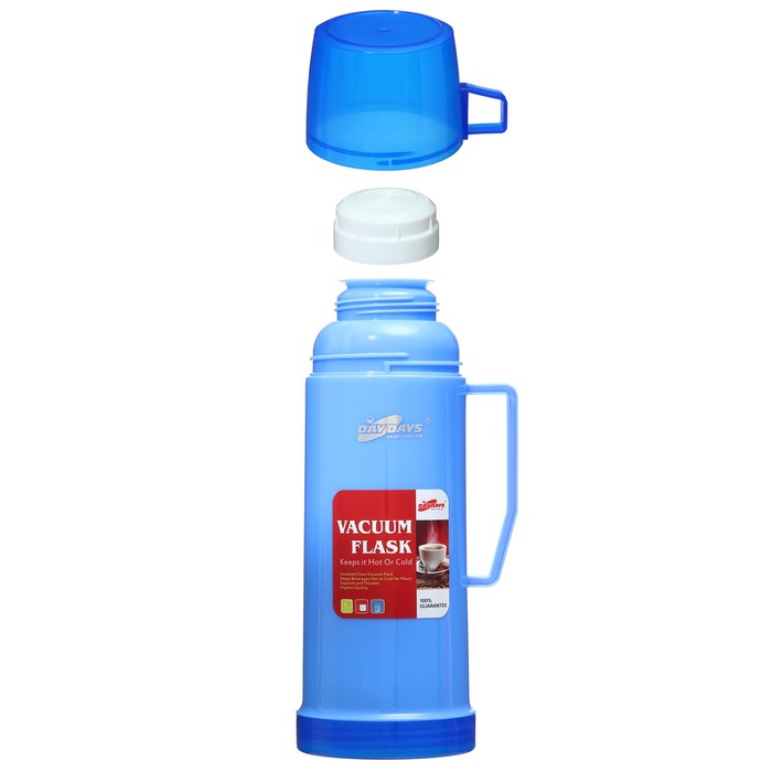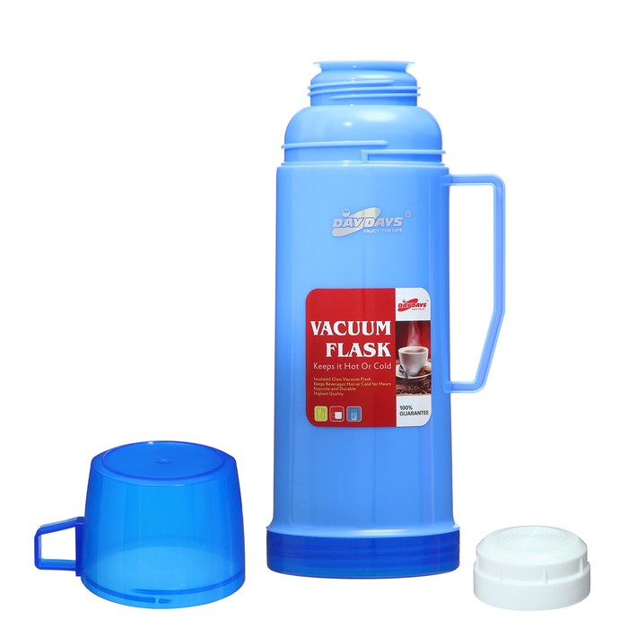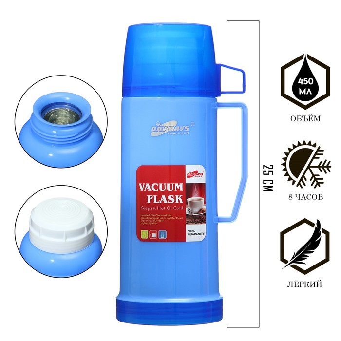 Термос 450 мл, со стеклянной колбой, с кружкой, 12 х 25 см, синий
