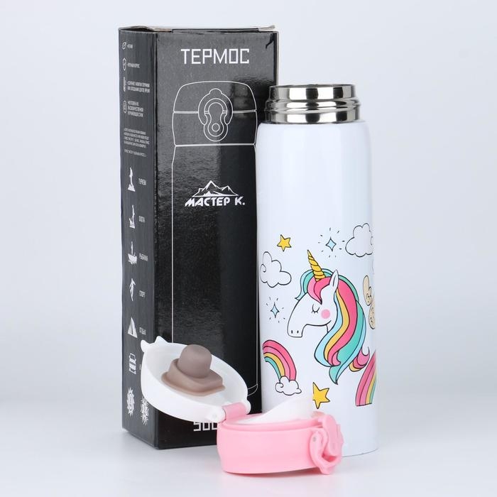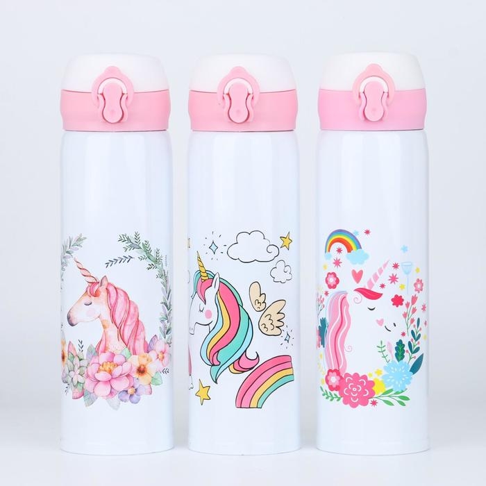 Термос, 450 мл, Топ "Единорог", сохраняет тепло 10 ч, 7 х 24.5 см, микс