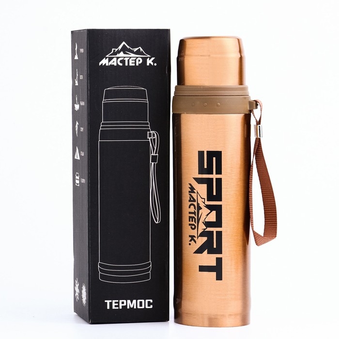 Термос, 550 мл, Гильза "Мастер К. Спорт", с кружкой, сохраняет тепло 10 ч, 7 х 28 см, бронза