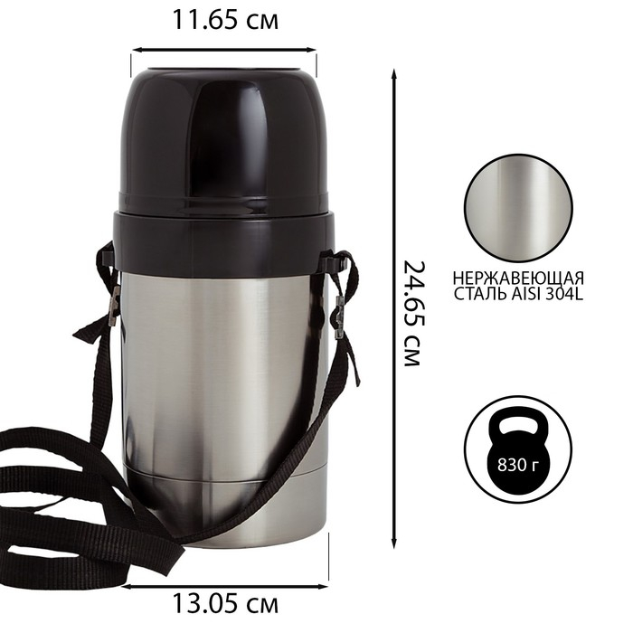 Термос "Амет. Дорожный" 1с668, с узким горлом, 1 л, 49°С, 24 ч, на ремне