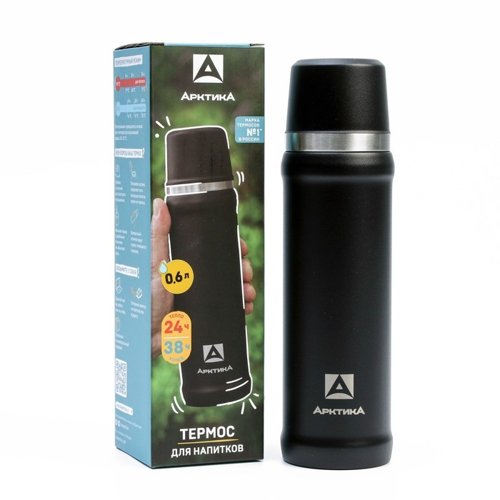 Термос "Арктика", 111, 600 мл, сохраняет тепло 24 ч, 26.2 х 7.4 см, черный