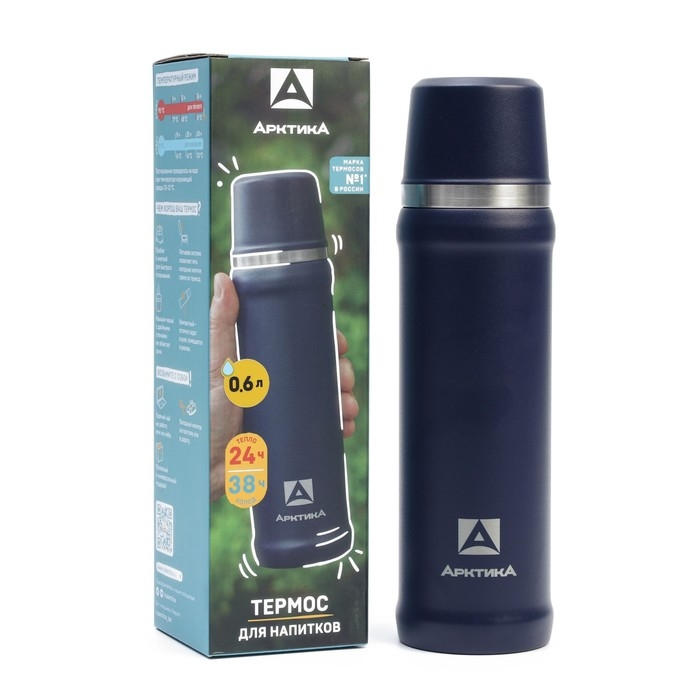 Термос "Арктика", 111, 600 мл, сохраняет тепло 24 ч, 26.2 х 7.4 см, синий