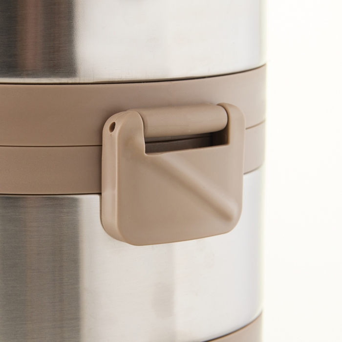 Термос изготовлен из нержавеющей стали, которая не впитывает запахи и легко моется. Оснащен нескользящим дном, которое обеспечивает устойчивость на различных поверхностях и предотвращает его перемещение во время использования. Широкое горло облегчает наполнение и чистку. Термос имеет две секции, что дает возможность удобно хранить и разогревать различные блюда. Благодаря этому вы сможете наслаждаться как горячей, так и холодной пищей в любое время и в любом месте. Помимо этого, каждая из секций термоса имеет крышку с удобным клапаном, который обеспечивает легкое открытие и закрытие контейнера, а также способствует герметичности. В комплекте идет складная вилка-ложка, которая прикреплена к внутренней стороне крышки, что позволяет использовать термос как полноценную посуду и не требует дополнительных приборов. А также предусмотрена ручка для комфортной транспортировки термоса.