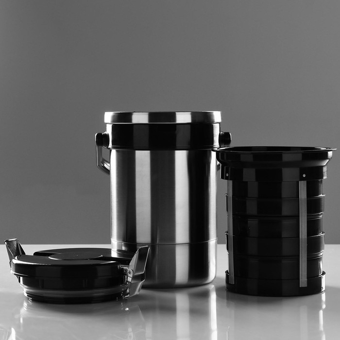 Используйте термос для еды "Амет. Экспресс" 1с494, 1.2 л (3 контейнера × 0.4 л), 74 °С, 6 ч дома, на даче, берите с собой на работу, рыбалку и охоту, в походы и путешествия.