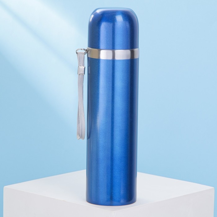 Термос, 1 л, Гильза "Мастер К", с кружкой, сохраняет тепло 24 ч, гарантия 5 лет, синий