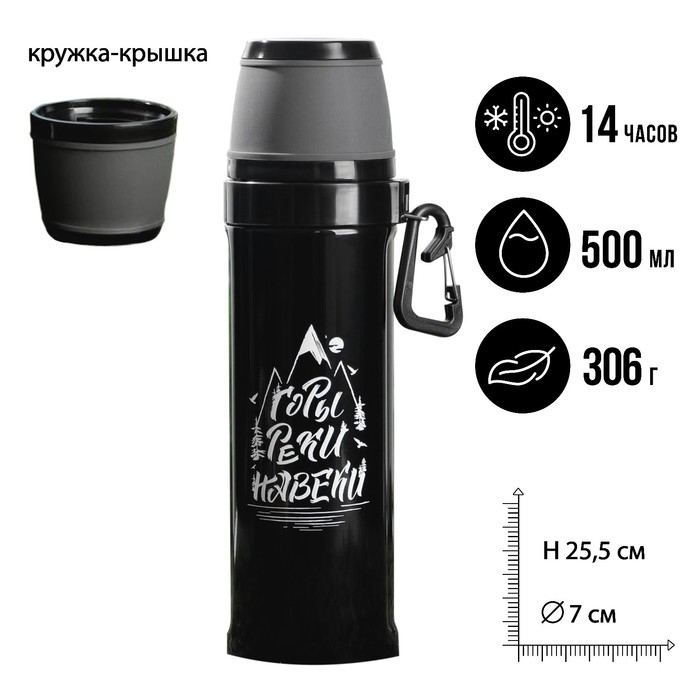 Термос с карабином «Горы», 500 мл, сохраняет тепло 14 ч