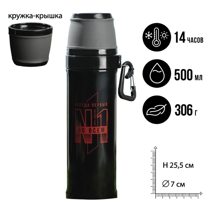 Термос с карабином «Всегда первый», 500 мл, сохраняет тепло 14 ч