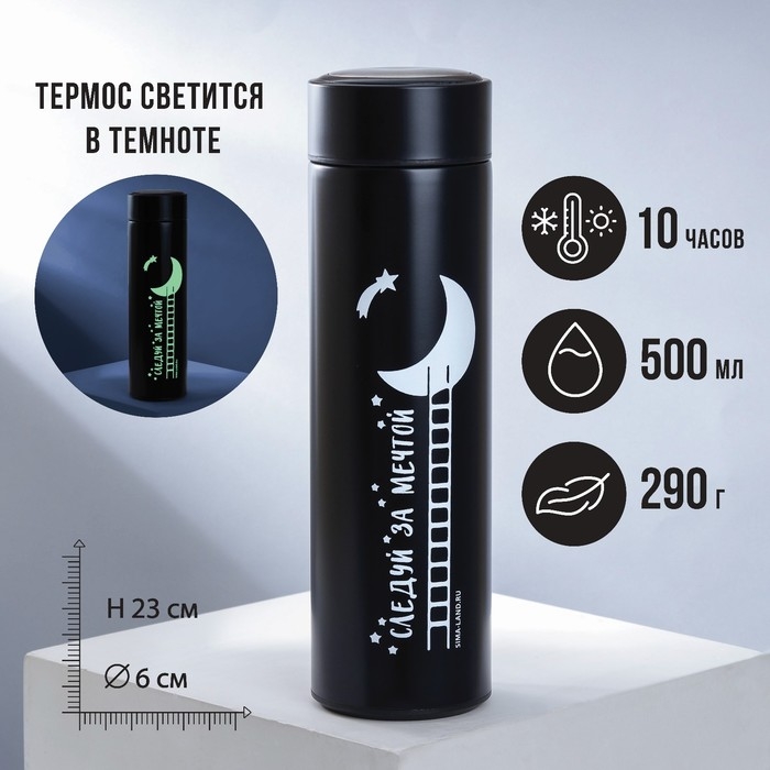 Термос «Следую за мечтой», 500 мл, светится в темноте, сохраняет тепло 6-10 ч