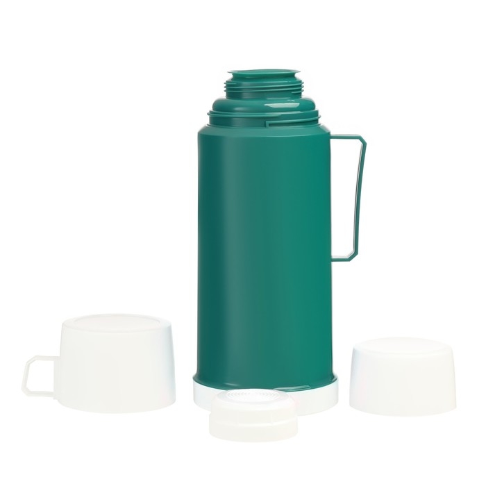 Термос со стеклянной колбой "Классик" с 1 кружкой и 1 чашкой, 1 л, 13 х 29 см, зелёный