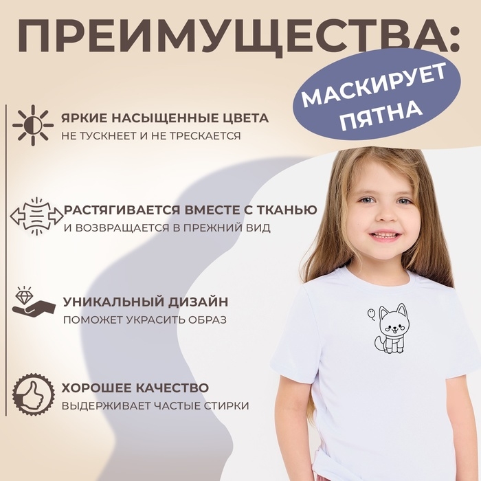 Термонаклейка «Щенок с шариком» поможет сделать любую вещь уникальной и интересной. Яркий и стильный термотрансфер хорошо тянется, не трескается при растяжении и не отклеивается во время стирки. Аппликация поможет замаскировать небольшие пятна или дырочки. Подходит для нанесения практически на любую ткань и вид одежды, главное — следовать приложенной инструкции.