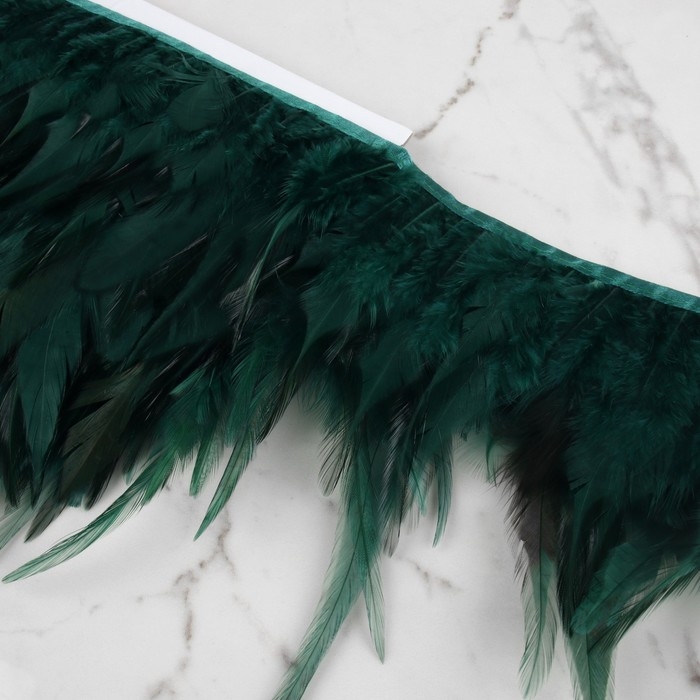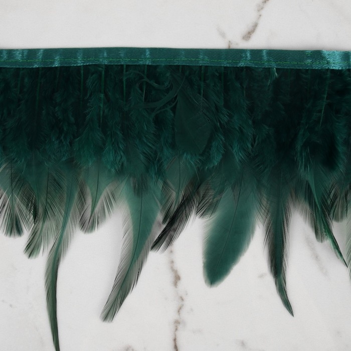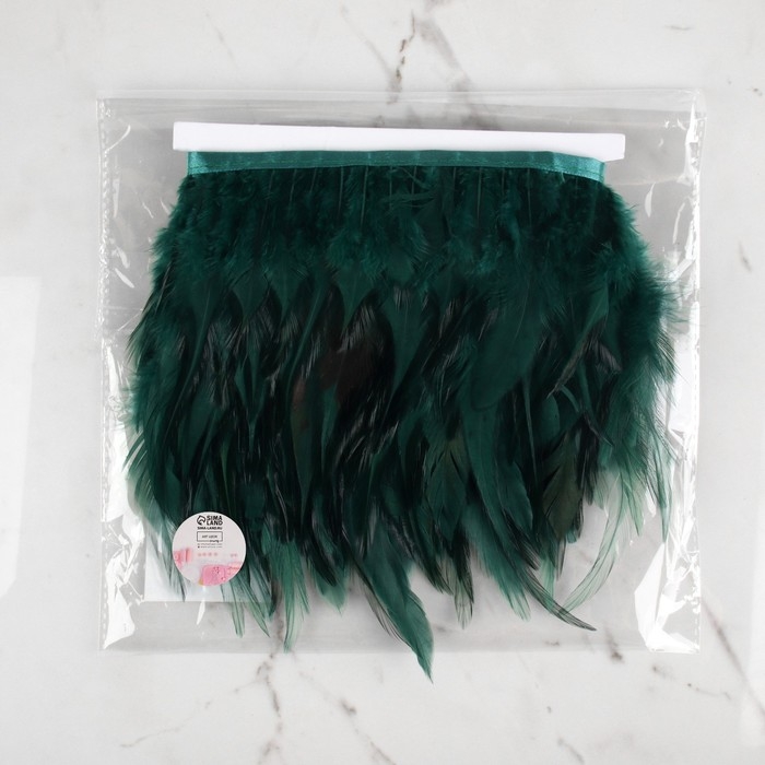 Тесьма с перьями петуха, 10-15 см, 5 ± 0,5 м, цвет изумрудный