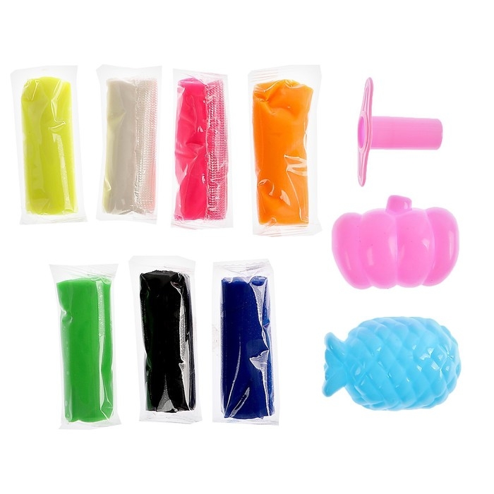 Тесто для лепки, 7 цветов, 190 грамм, 2 формочки, шприц, инструкция, цвета МИКС поможет развить воображение, эмоциональное, визуальное восприятие, мелкую моторику.