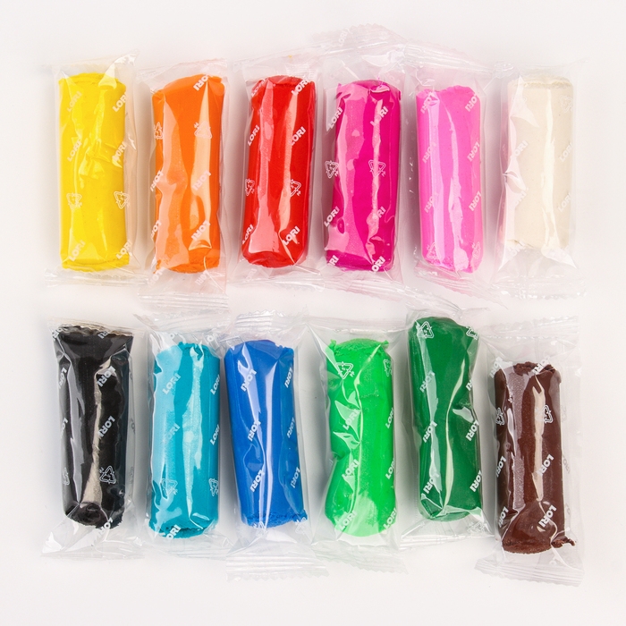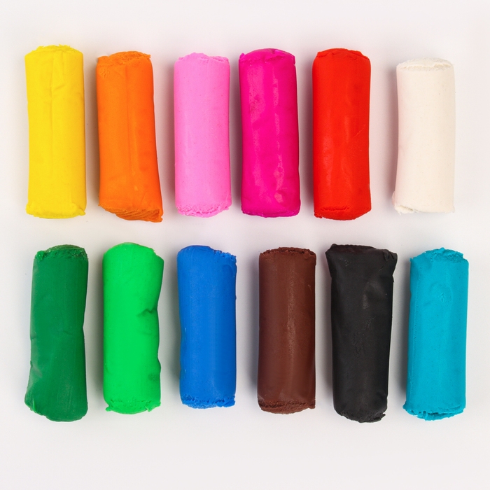 Тесто-пластилин, 12 цветов, 6 формочек + скалка: 16 см
