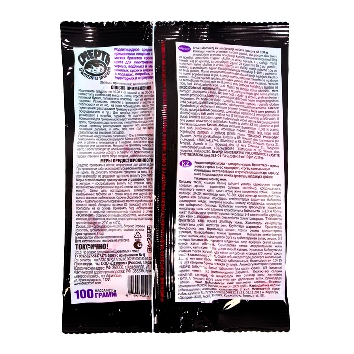 Назначение: для уничтожения крыс и мышей в жилых помещениях и хозяйственных постройках.
