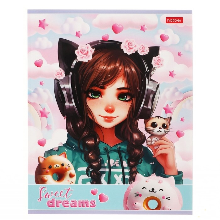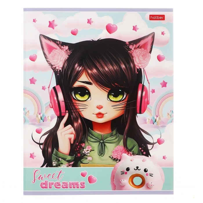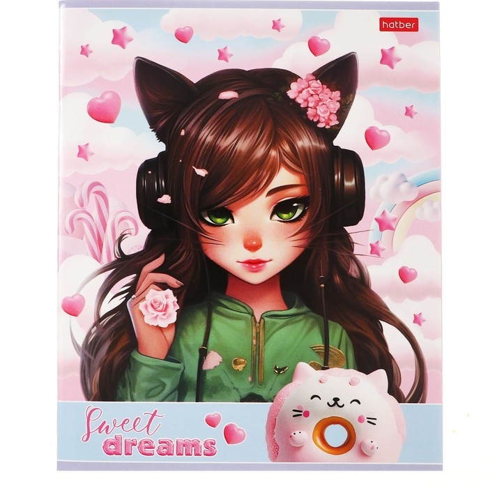 Тетрадь 40 листов в клетку "Девочка-кошка", обложка мелованный картон, блок офсет 65г/м2, МИКС