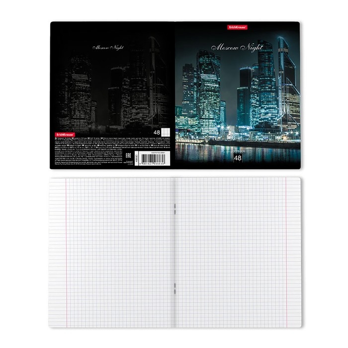 Тетрадь 48 листов в клетку, ErichKrause Moscow Night, обложка мелованный картон, блок офсет 100% белизна, МИКС (1 вид в спайке)