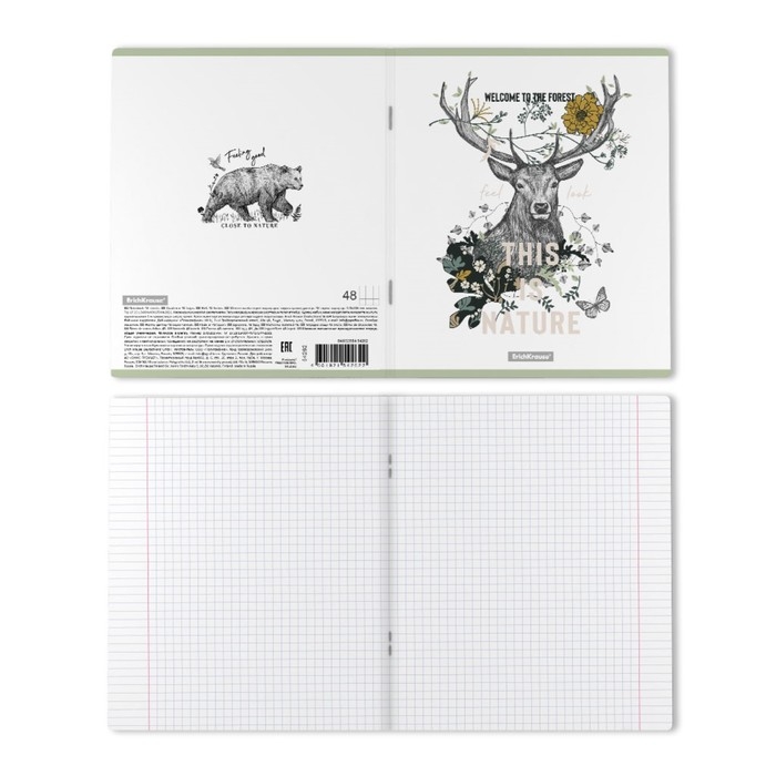 Тетрадь 48 листов в клетку, ErichKrause Natural Life, обложка мелованный картон, матовая ламинация, блок офсет 100% белизна, МИКС (1 вид в спайке)