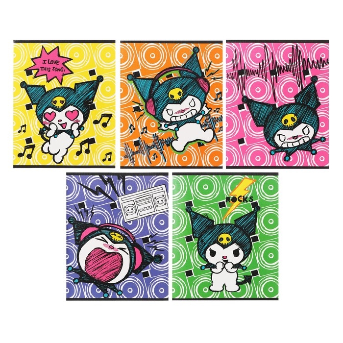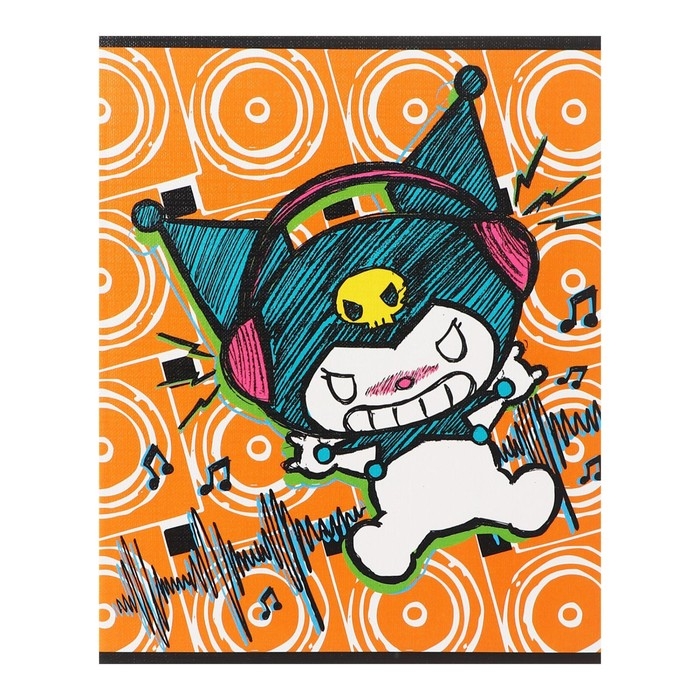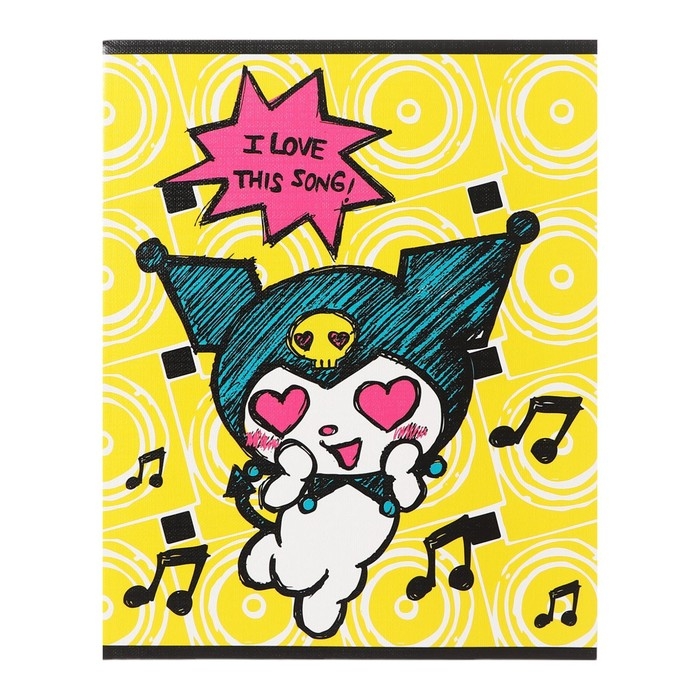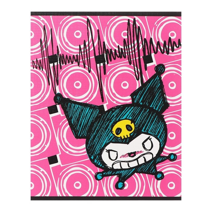 Тетрадь 48 листов в клетку Kuromi, обложка "лен", УФ-лак, белизна 92%, блок 60 г/м2, МИКС