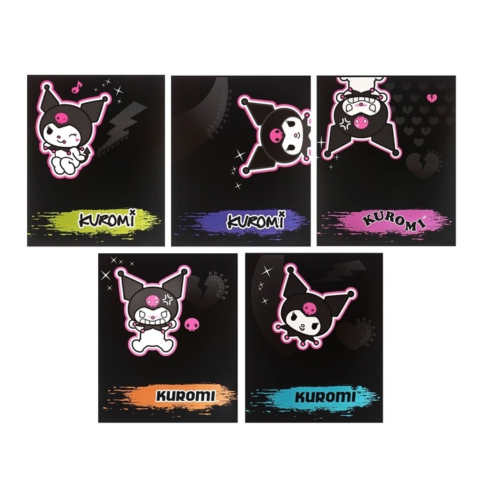 Тетрадь 48 листов в клетку Kuromi, обложка мелованный картон, тиснение фольгой, белизна 92%, блок 60 г/м2, МИКС