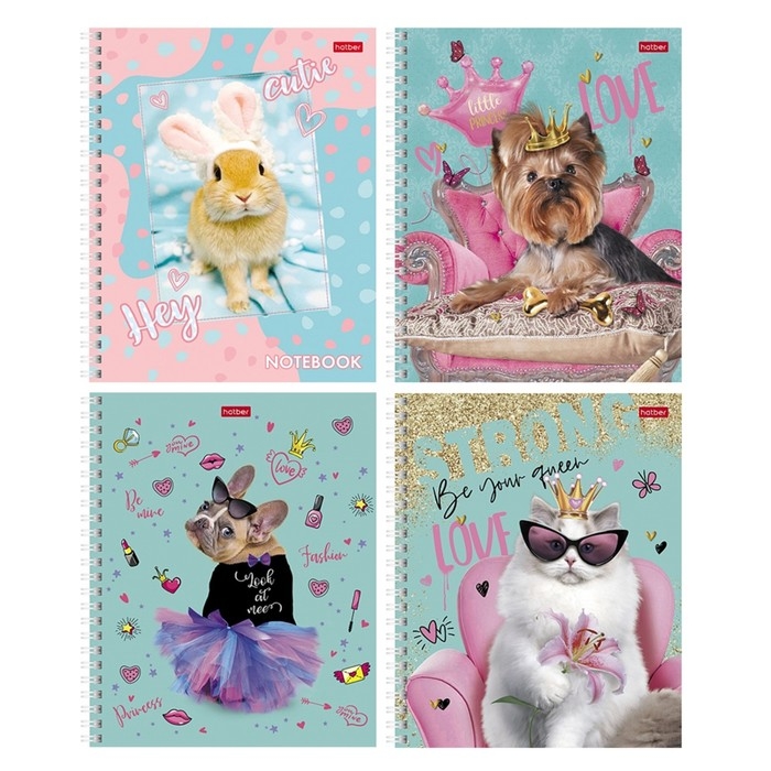 Тетрадь 48 листов в клетку на гребне "Стильные крошки", обложка мелованный картон, блок офсет 65г/м2, МИКС