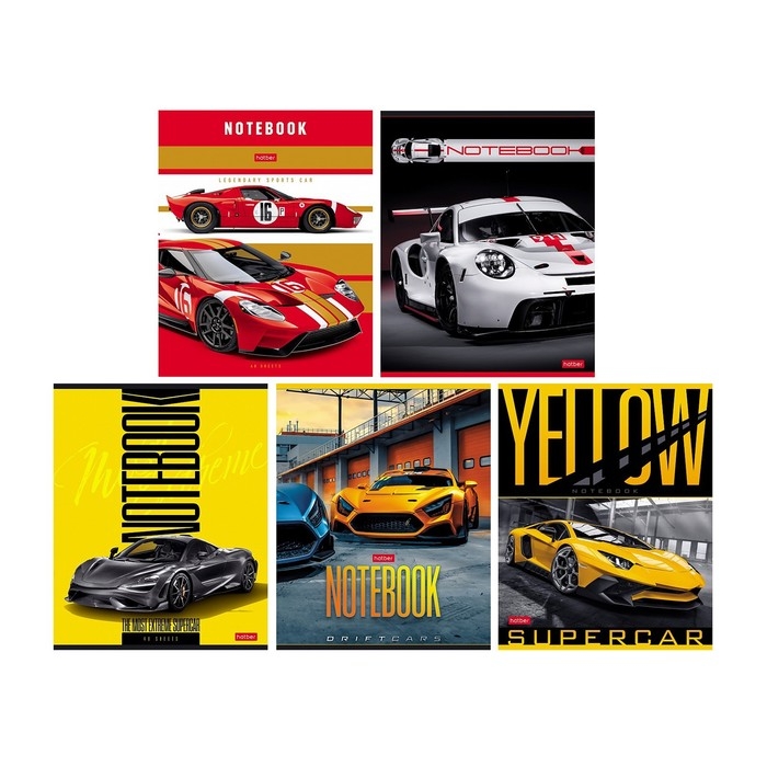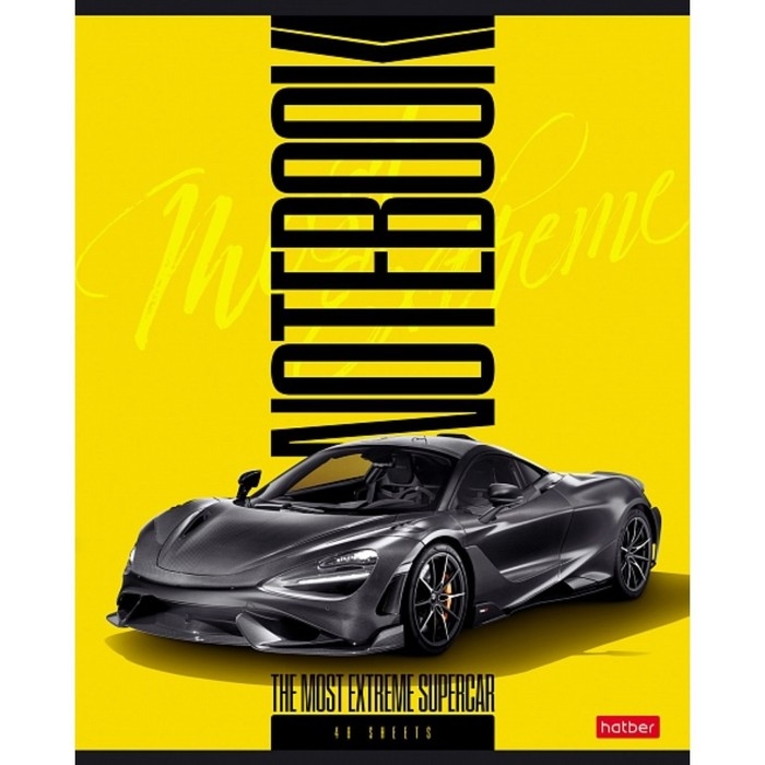 Тетрадь 48 листов в линейку "Спортивные авто", обложка мелованный картон, скруглённые углы, блок офсет 65г/м2, МИКС
