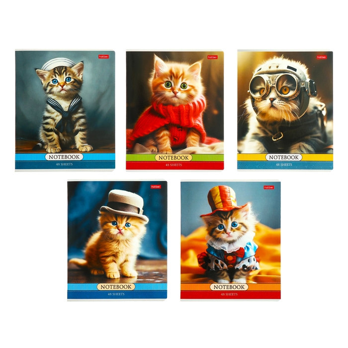 Тетрадь 48л кл Котики-артисты, обл мел карт, скругл угл, бл 65г/м2, МИКС