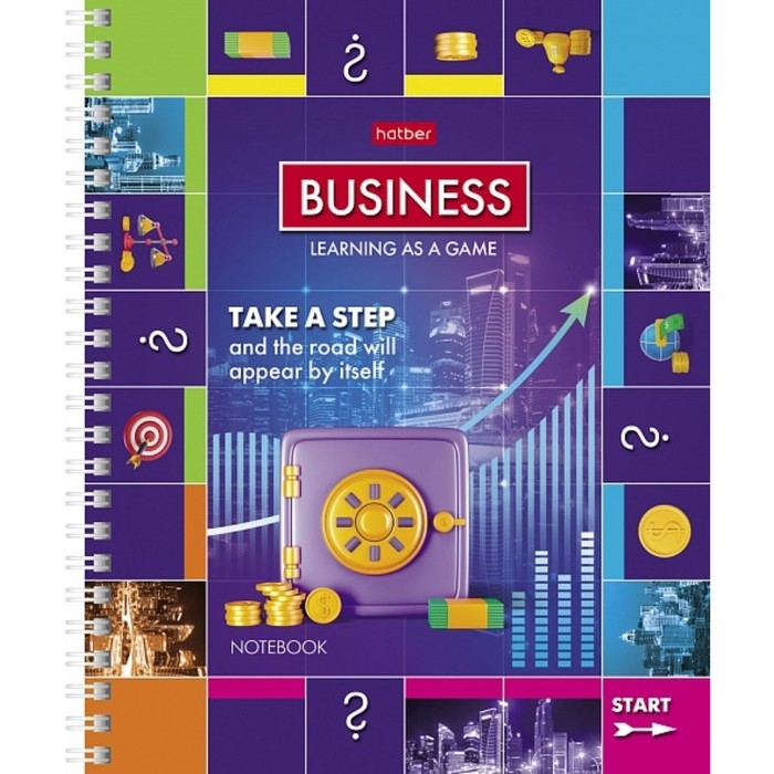 Тетрадь 80 листов в клетку на гребне "Монополия", обложка мелованный картон, блок офсет 65г/м², 4 вида