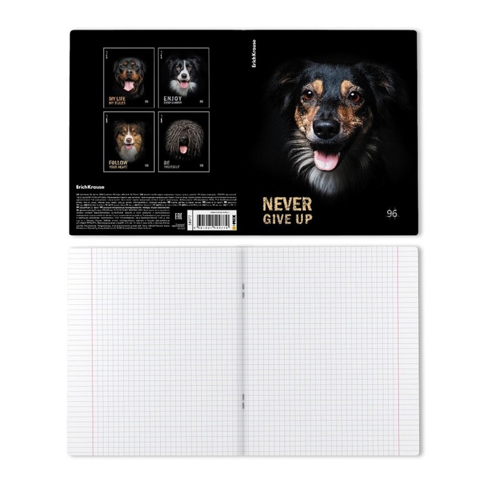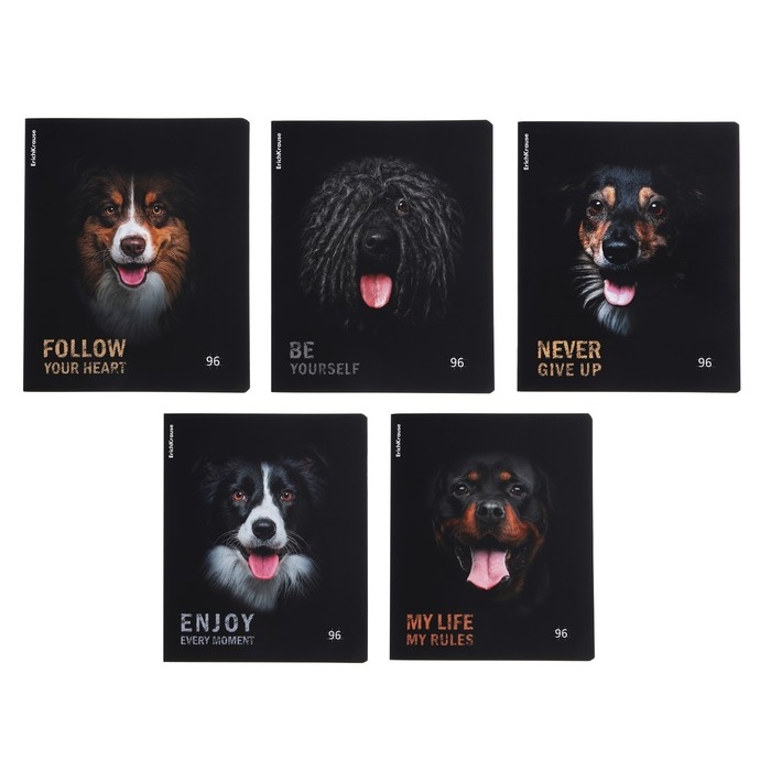 Тетрадь 96 листов в клетку, ErichKrause "Собаки", обложка мелованный картон, матовая ламинация, блок офсет 100% белизна, МИКС