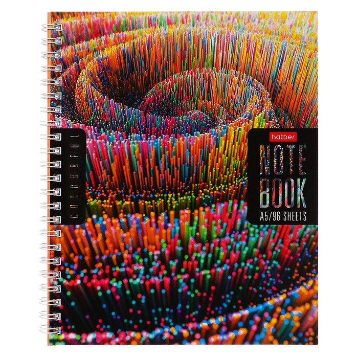 Тетрадь 96 листов в клетку на гребне "Colorful line", обложка мелованный картон, перфорация на отрыв, блок 65 г/м2, МИКС