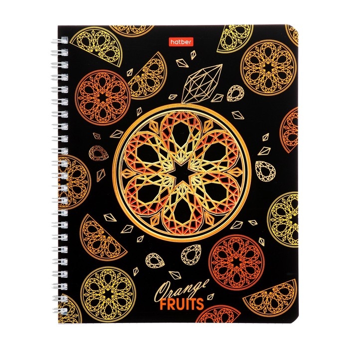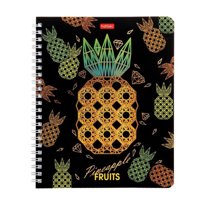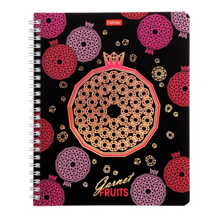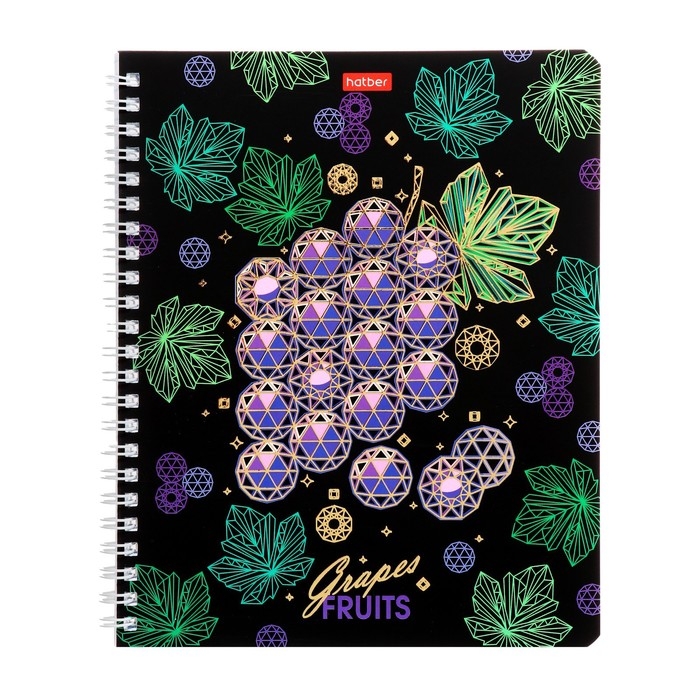 Тетрадь 96 листов в клетку на гребне "Драгоценные фрукты", обложка мелованный картон, матовая ламинация, 3D фольга, блок 65, 4В, МИКС