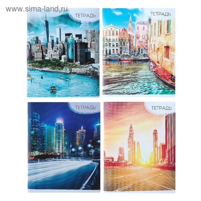 Тетрадь 96 листов в линейку Calligrata "Город", обложка мелованный картон, блок №2, белизна 75% (серые листы), (серые листы) МИКС