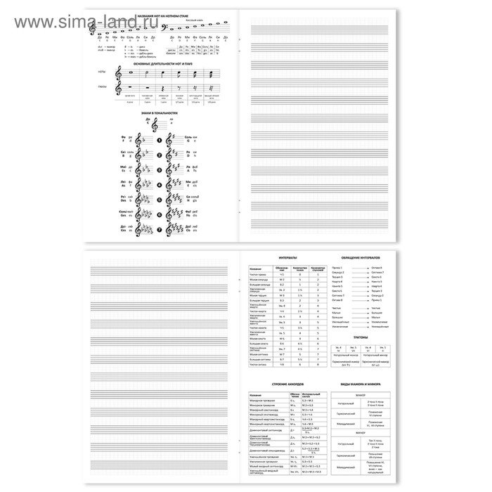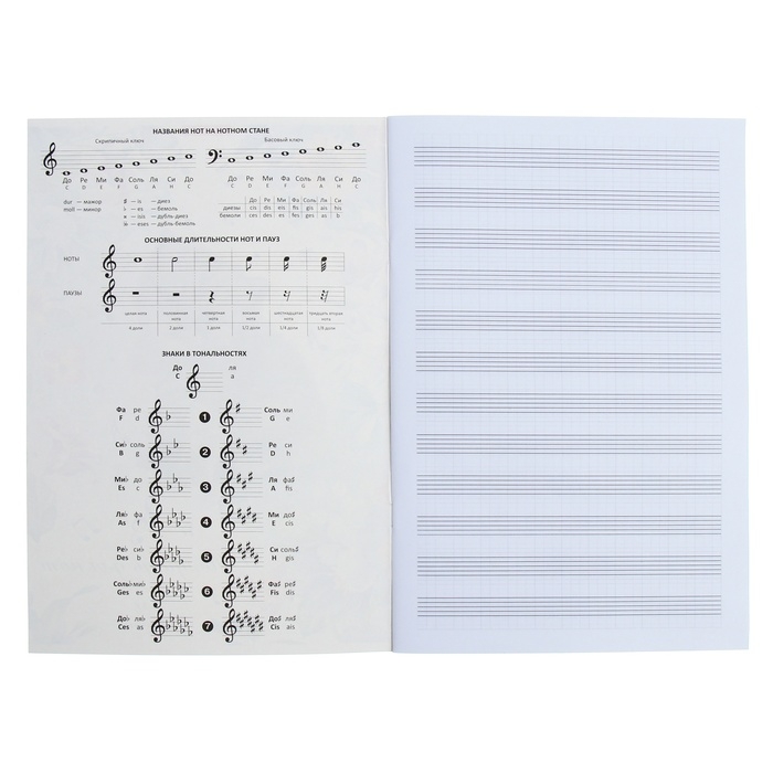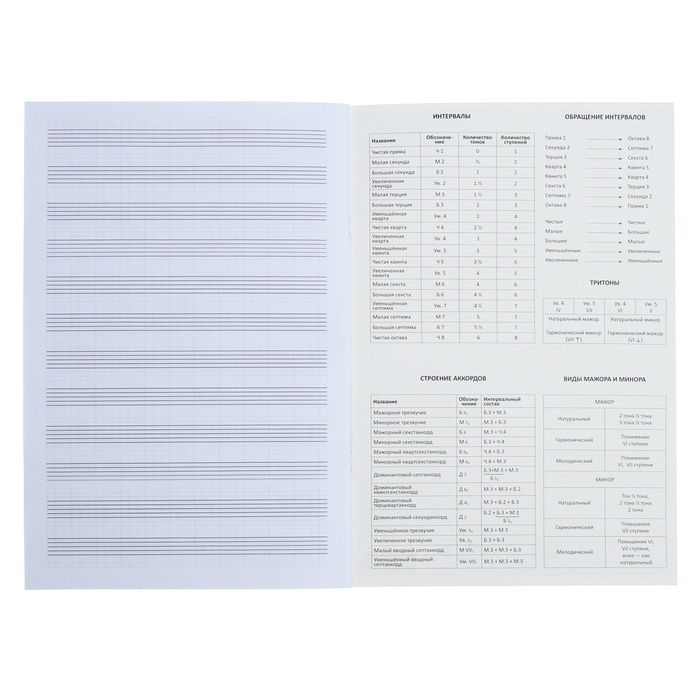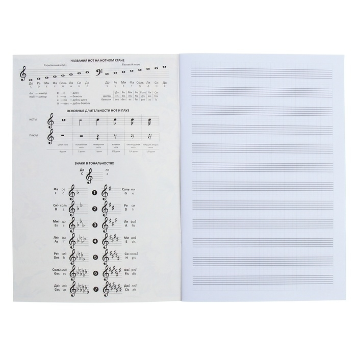 - Имеет спрaвочный мaтериaл и вспомогaтельные линии нотного стaнa.