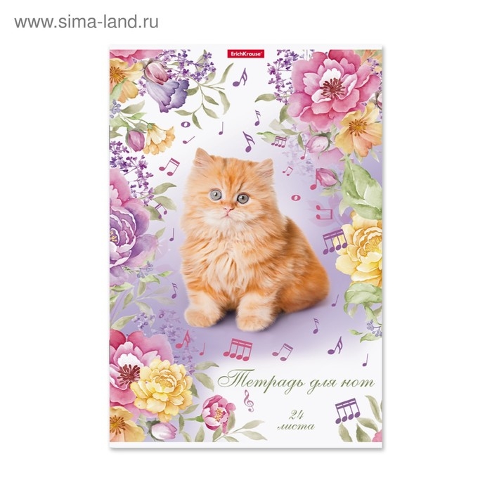 Тетрадь для нот А4, 24 листа, ErichKrause "Мурзики", вертикальная ориентация, обложка мелованный картон, блок офсет 100% белизна, МИКС (1 вид в спайке)